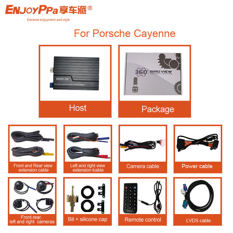 Το σύστημα κάμερας αυτοκινήτου 360 για την Porsche είναι ένα προϊόν υψηλής τεχνολογίας που παρέχει στους οδηγούς πλήρη εικόνα του περιβάλλοντος του οχήματός τους.Το σύστημα αποτελείται από τέσσερις κάμερες υψηλής ανάλυσης που τοποθετούνται στρατηγικά γύρω από το αυτοκίνητο, παρέχοντας μια θέα 360 μοιρών του εξωτερικού του αυτοκινήτου.