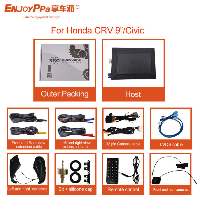 Το σύστημα κάμερας 360 είναι συμβατό με οχήματα Honda, καθιστώντας το ιδανικό προϊόν για τους ιδιοκτήτες αυτοκινήτων Honda.Μπορείτε εύκολα να εγκαταστήσετε το σύστημα κάμερας και να απολαύσετε τα οφέλη μιας 360 μοίρες θέα του περιβάλλοντος σας.